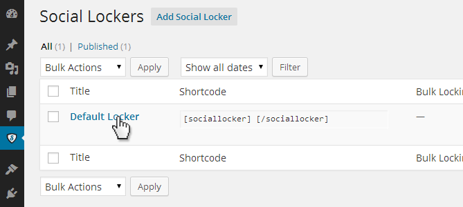 Click on the shortcode titled “Default Locker” to open the locker editor