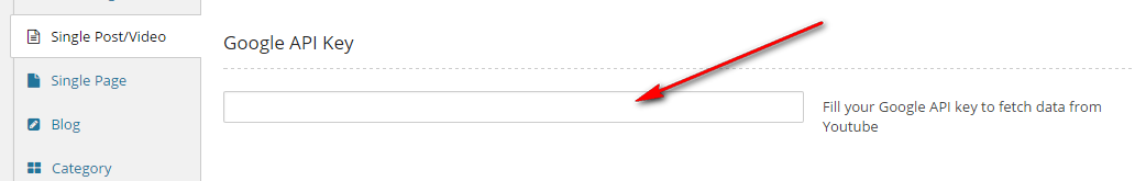 Step 1: Go to Theme Options > Single Post/ Video > Google API Key
