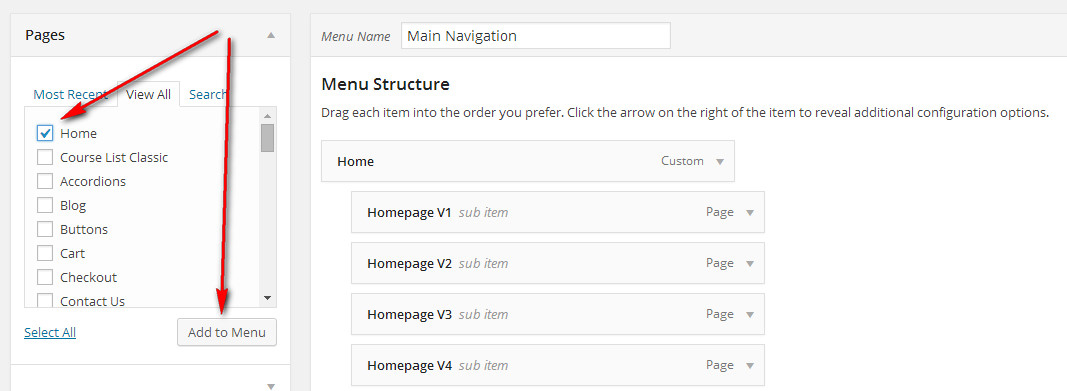 Step 9. Go to Appearance > Menus, choose Main Navigation menu as Primary Menu