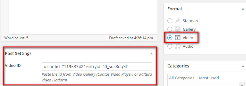 Paste this ID into Video ID and choose Video in Format and Publish post
