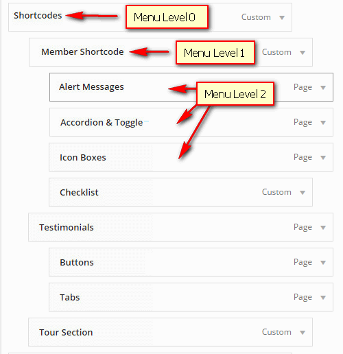 We call Parent Level MenuLevel 0. Then, next levels are Level 1, Level 2...