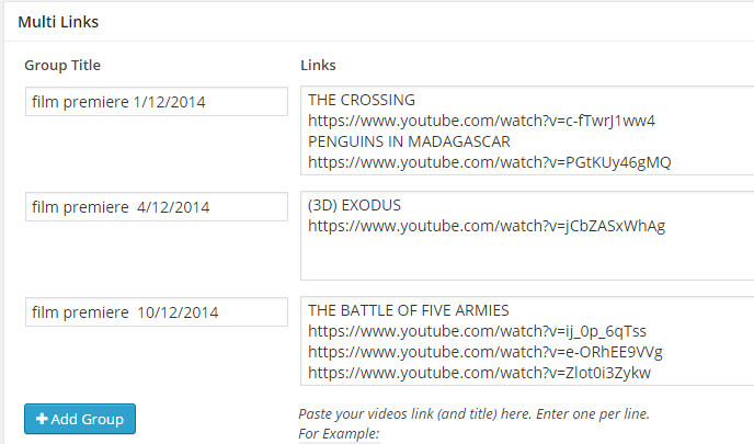 Links: Enter your videos link and title. Enter one per line.