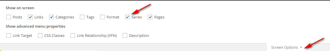 Note: If Series is not displayed in the left box, go to Screen Options > Series to activate this feature