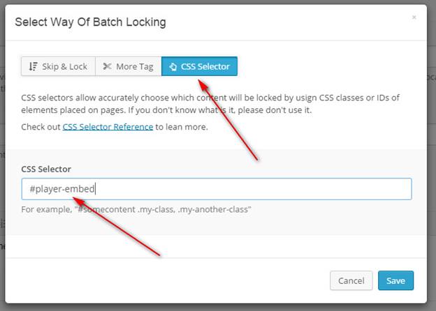 Step 3: Press Setup Batch Lock, choose tab CSS Selector and enter the value #player-embed